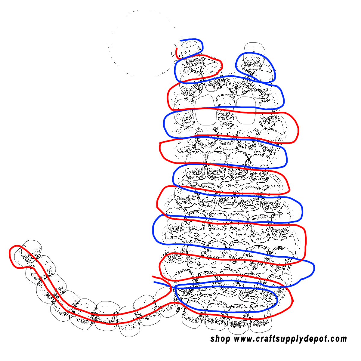 The illustration below shows you how each cord side is threaded into the beads. ![]()